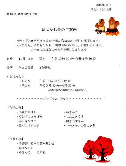 鳴尾北小学校 2018年度 2学期おはなし会