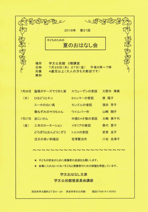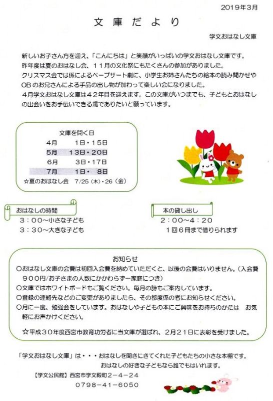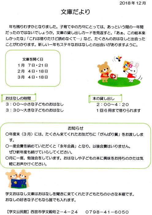 6/18の文庫は、大阪北部地震のため中止しました。